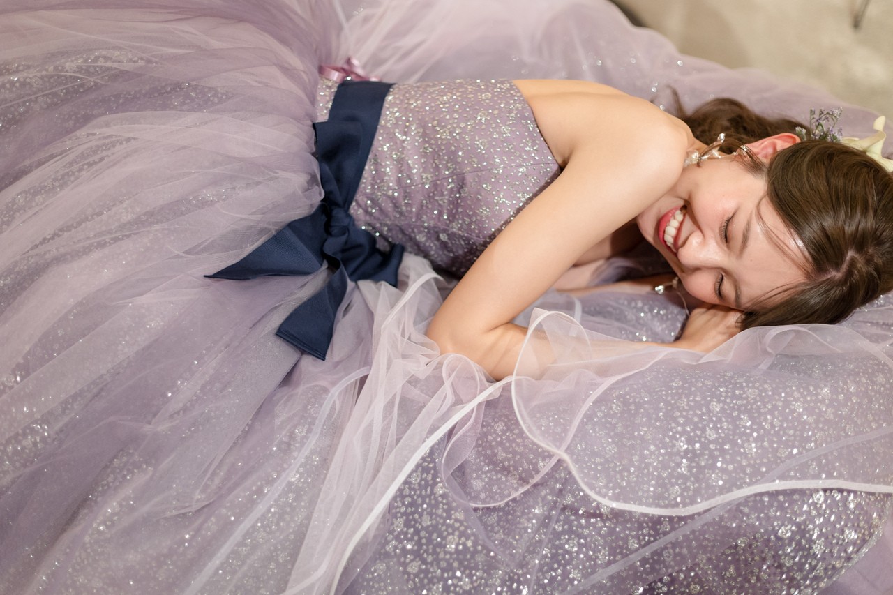 なかなか紫のドレスが無く、そんな中キヨコハタのInstagramで紫のドレスが新作で出ると見て