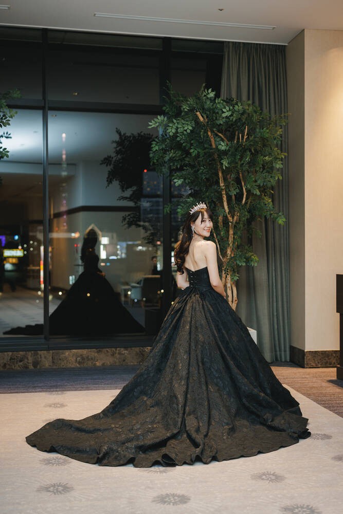 試着を重ねる中で、心から「これだ」と思える別のブラックドレスに出会い、そちらに決めまし