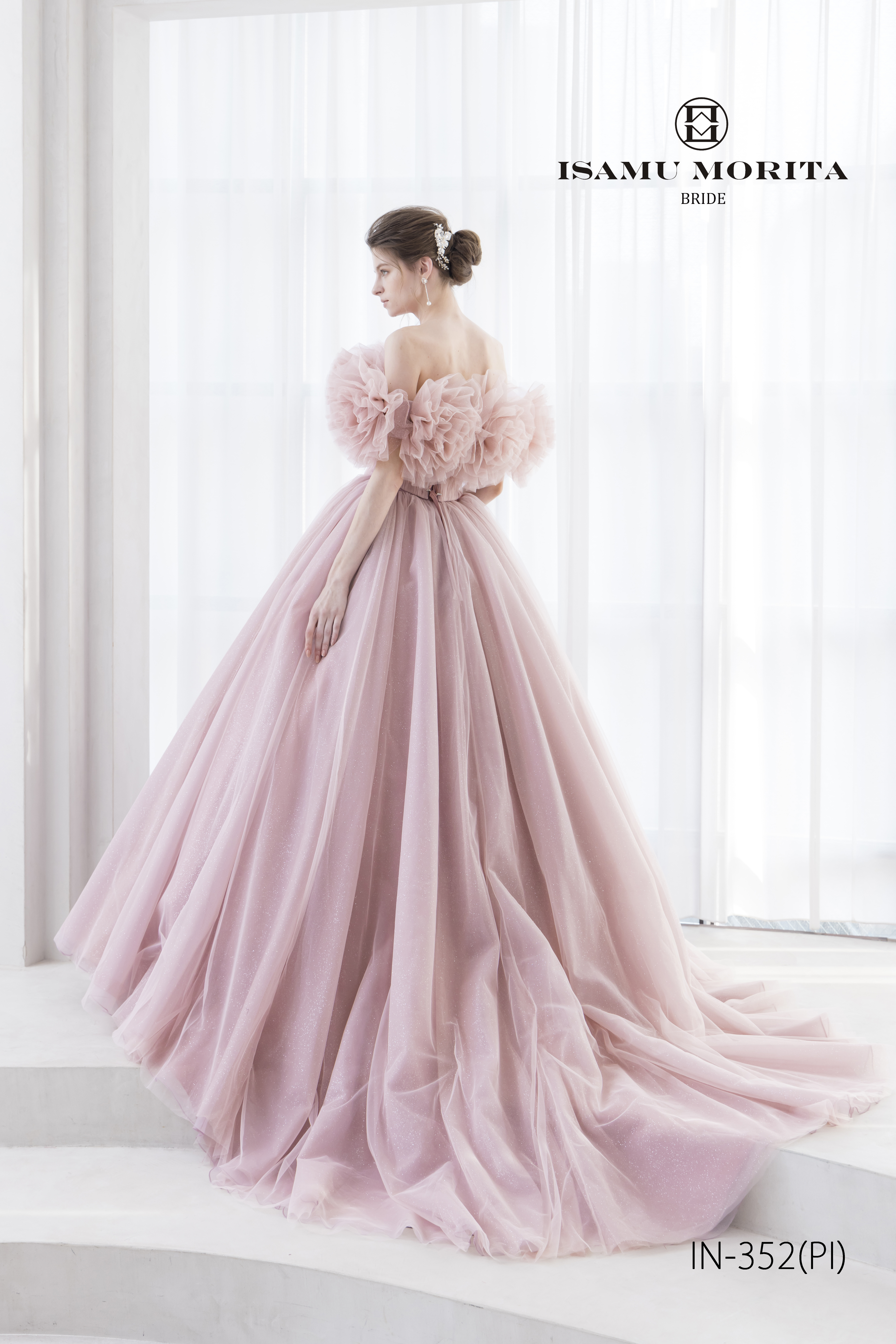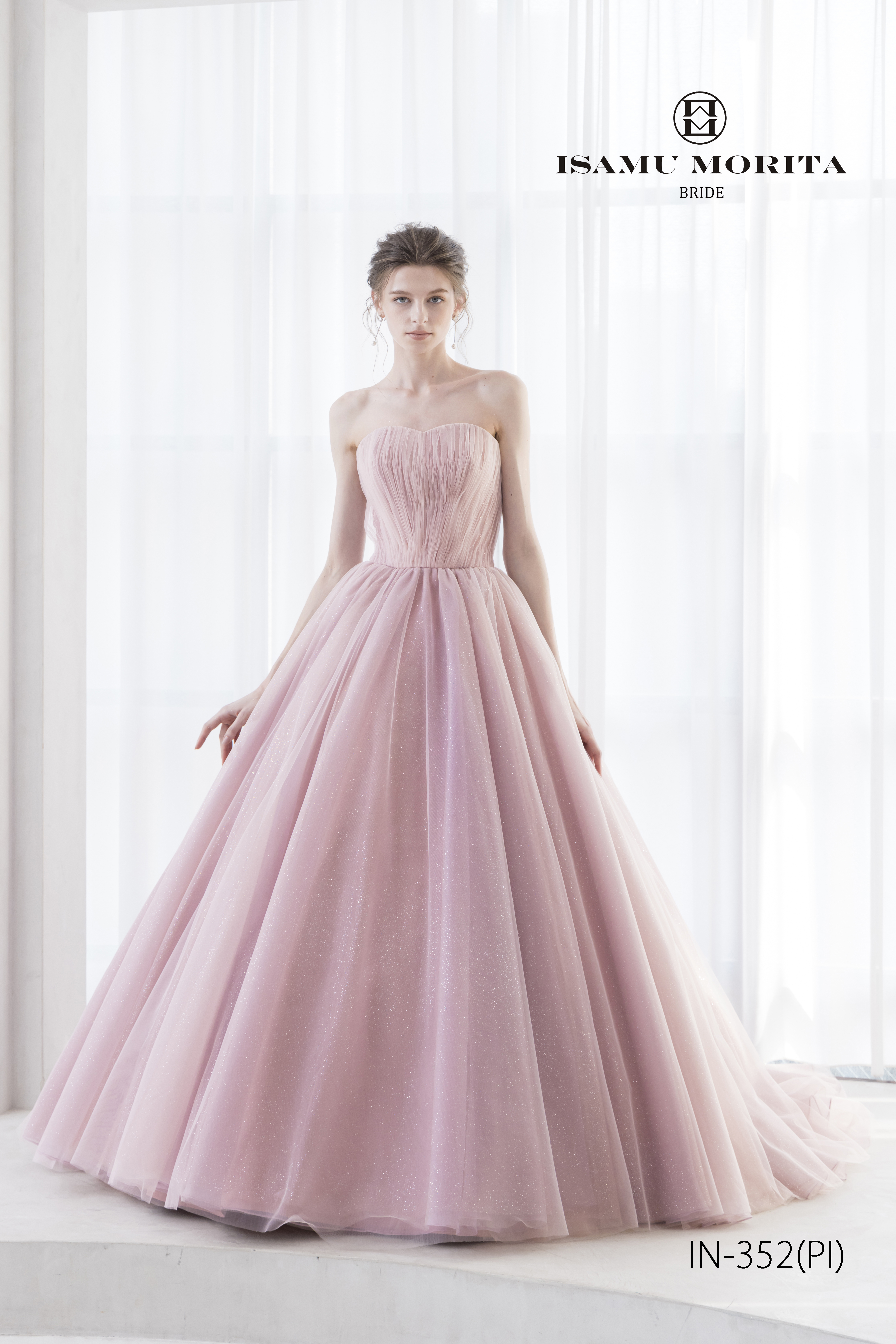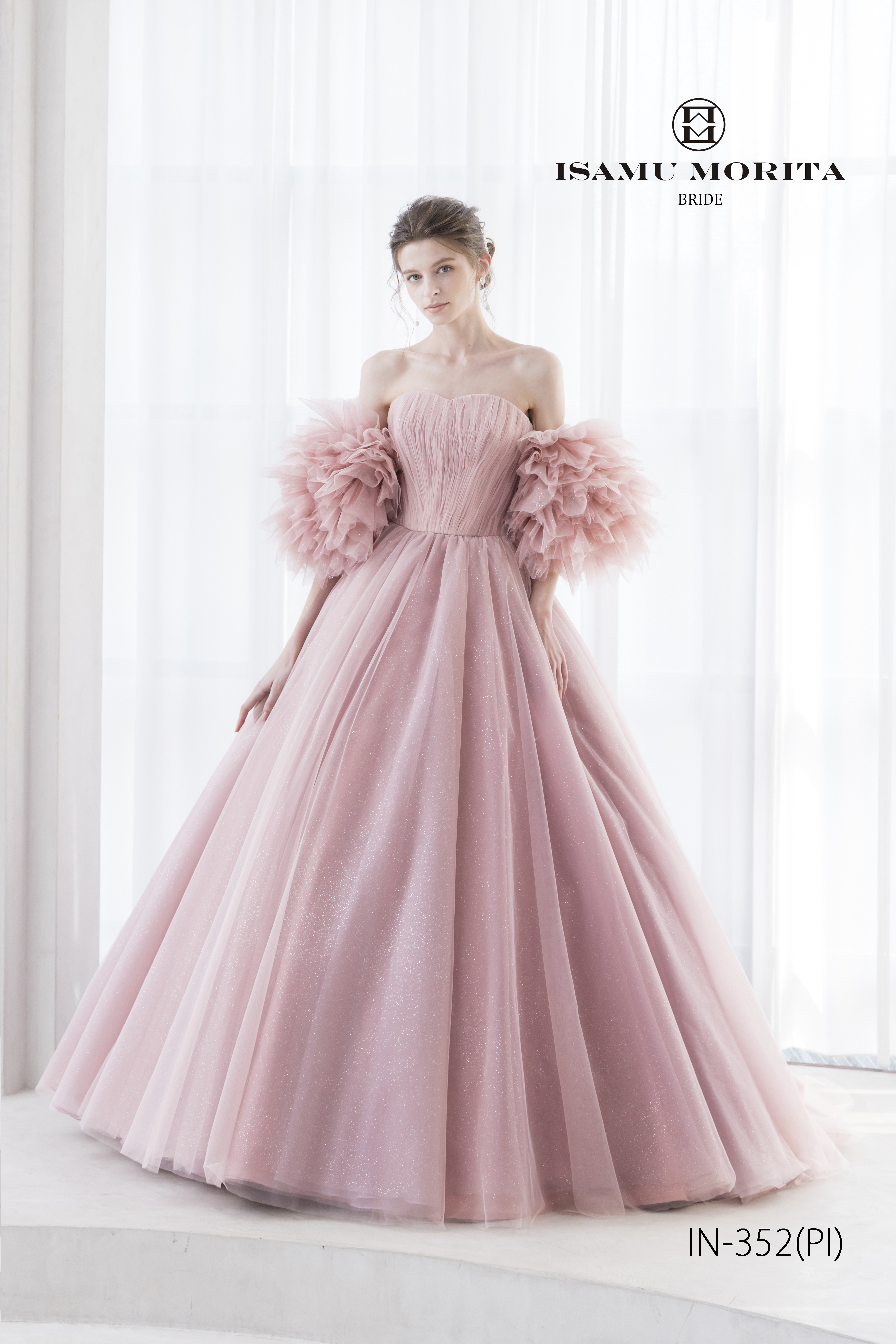 淡くやさしいピンクに包まれた、ISAMU MORITAならではのロマンティックな一着。